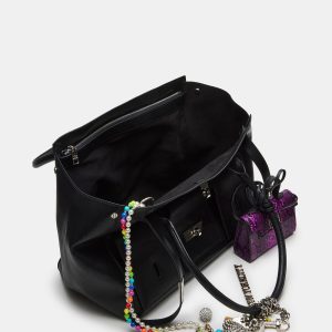Expertly crafted, the AVERYY bag is a versatile shoulder satchel tote bag designed for both style and functionality. With a secure turn lock closure and interior back and front wall pockets, this bag ensures your belongings stay safe and organized. The colorful bead swag chains, rhinestone heart charm, and attachable top-handle micro bag charm add uniqueness to your look.