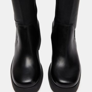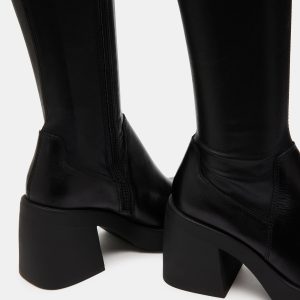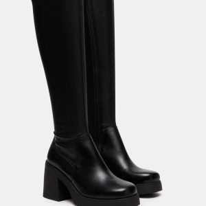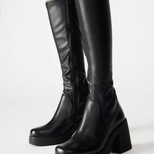 The BERKLEIGH square toe knee boot gives you a sleek and defined silhouette with a stretch fabric construction and platform sole with a block heel.