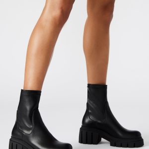Introducing the BOOMBA ankle bootie, featuring a trendy platform and lug sole for added height and traction. The versatile design elevates any outfit, making this a must-have for any fashion-forward wardrobe. Step up your style game and stay comfortable all day long with this boot.Â
