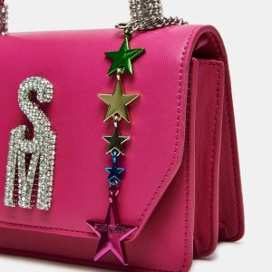 The BRAT mini bag features a top handle and a multi-colored star charm with bubble letter logo letters for a trendy look. With a crossbody strap and interior back wall, it offers convenience and organization while making a stylish statement.