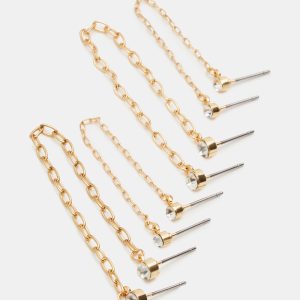 Add a touch of elegance to your look with our CRYSTAL CHAIN earrings set. These beautiful earrings feature a delicate chain design adorned with sparkling crystals. Elevate any outfit with this effortlessly glamorous accessory. Crafted with precision, these earrings are a must-have for any jewelry collection.