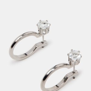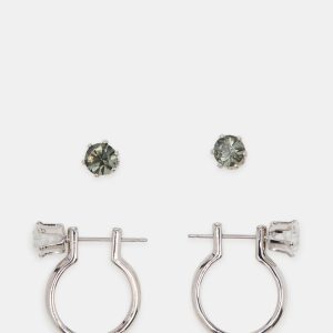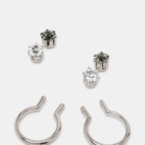 Enhance your style with our versatile CRYSTAL earring set. This set includes a pair of huggie earrings with interchangeable black and silver crystal studs, perfect for any outfit. Elevate your look with these elegant and trendy earrings.