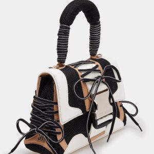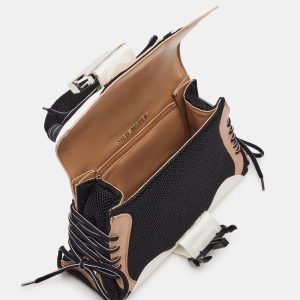 The DIEGO bag is a structured trapezoid bag with athletic-inspired details like mesh overlay panels, sneaker style lacing, and an oversized quick release buckle closure.
