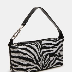 Expertly designed, the EMERSYN bag boasts fully beaded details and a logo design beaded into the bag. With hardware to attach charms and secure zipper closure, this bag also features a back wall zipper pocket for additional storage. Exude style and functionality with this chic accessory.