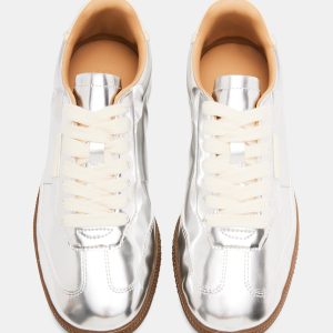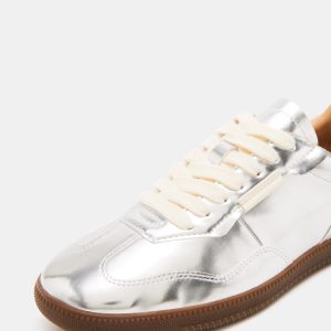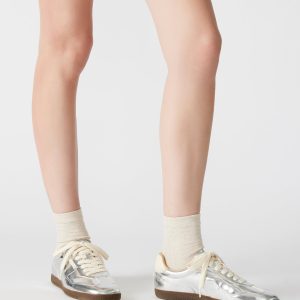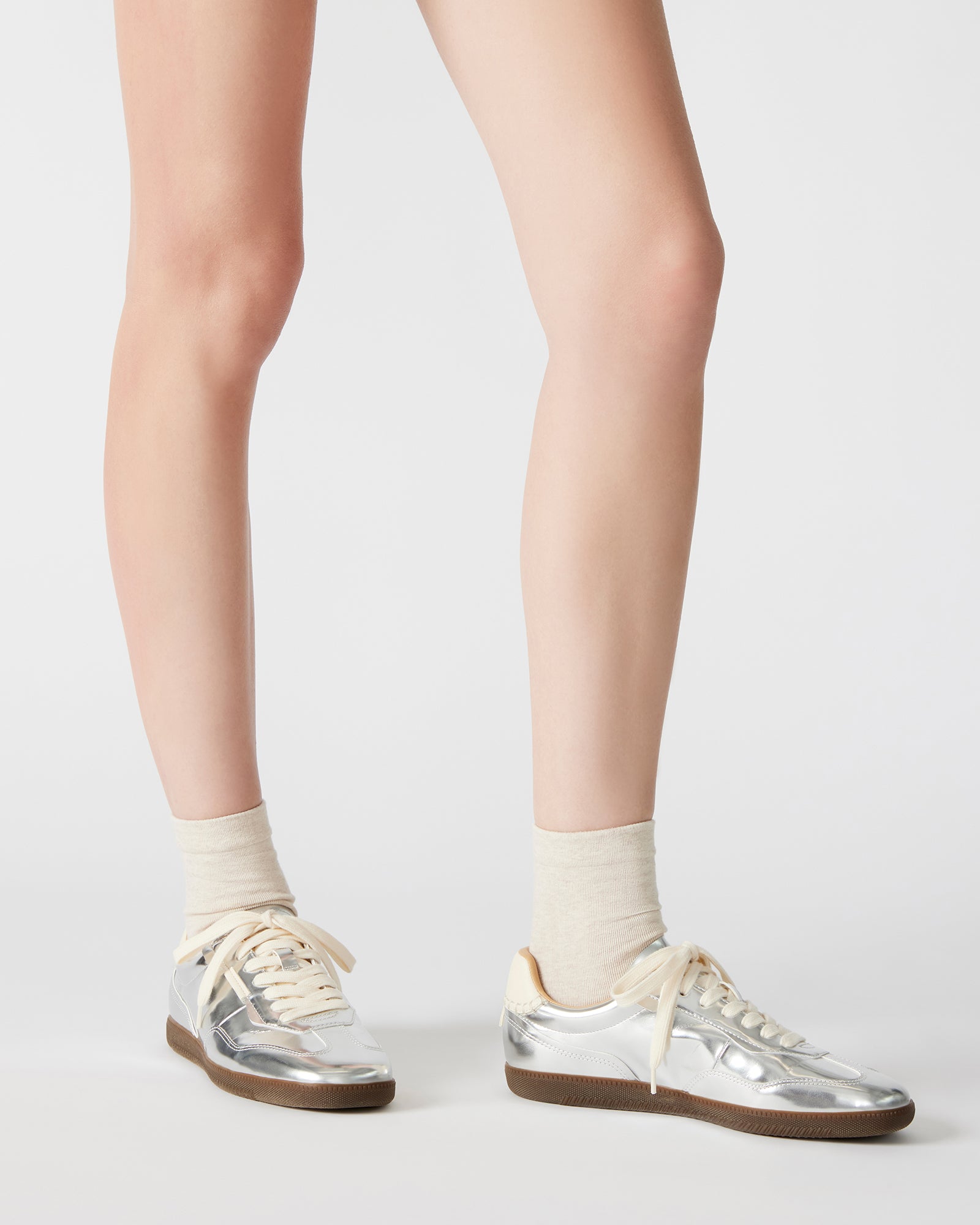 sneaker is a classic low-top design with velvety panels adding contrasting texture.