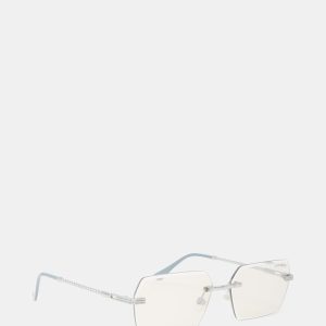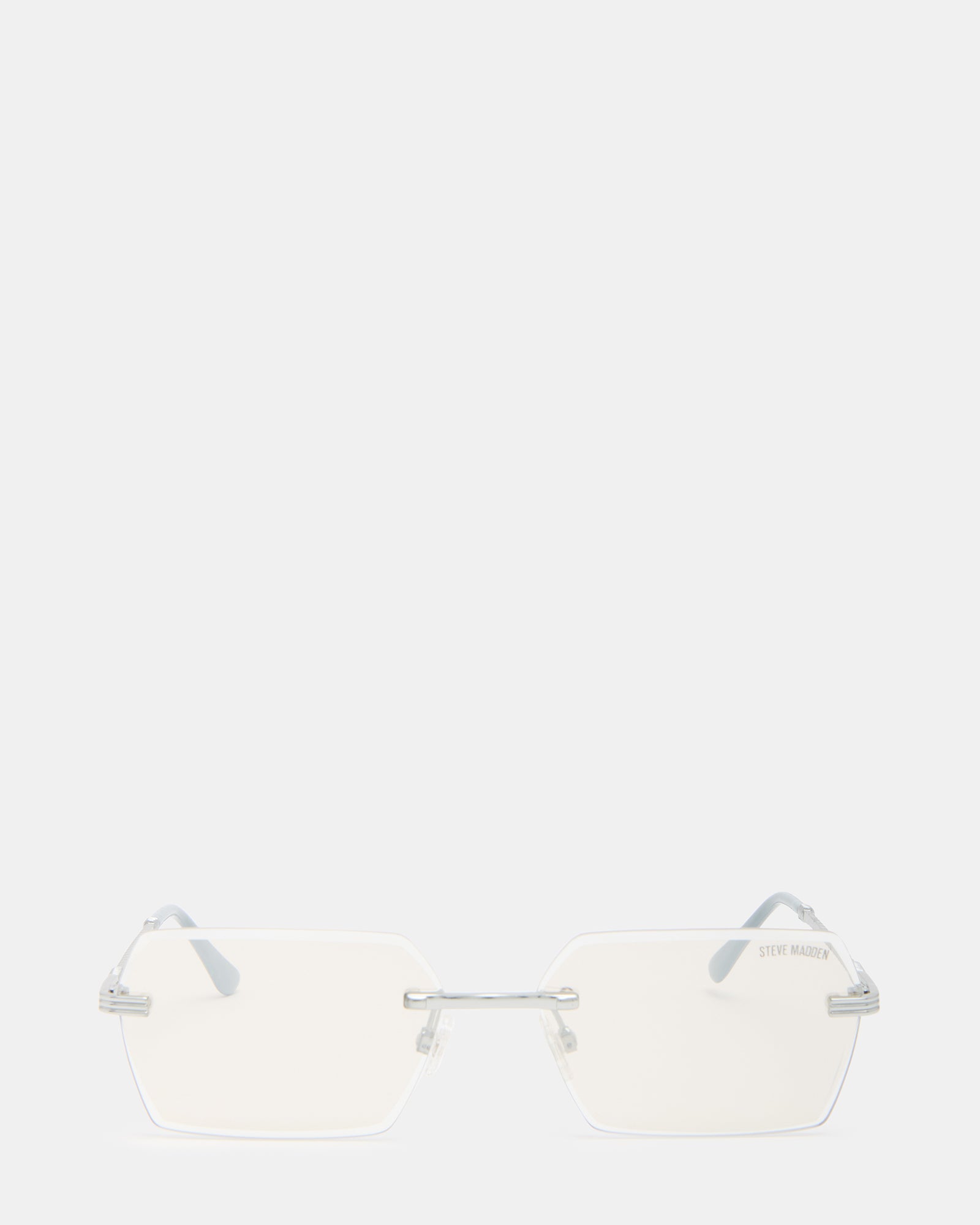 The FINNIAN sunglasses in silver provide a sleek and stylish accessory for your sunny days. Made with shiny silver design and clear with silver flash lenses, these sunglasses are sure to protect your eyes while making a bold statement. Elevate your look with these high-quality shades.