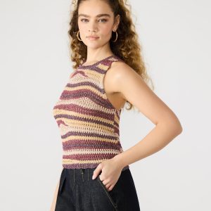 Crafted from a knit crochet fabric, the HANNAH top offers a unique and stylish twist to the classic sweater tank. Lightweight yet comfy, this top is perfect for adding texture and interest to any outfit. Stay on-trend with this versatile piece.