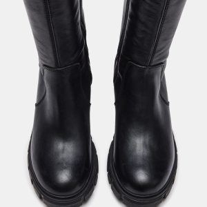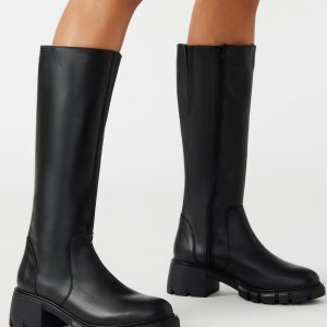 A chunky lug sole with molded treads and a block heel gives the HARTH knee