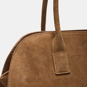 The HEIDEE bag is the ultimate everyday shoulder bag tote. Made with suede materials, it features an inside zip pouch for secure storage, a convenient snap button closure, and stylish buckle detail on the shoulder straps. Stay organized and look fashionable with this must-have accessory.