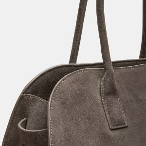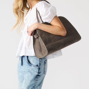 The HEIDEE bag is the ultimate everyday shoulder bag tote. Made with suede materials, it features an inside zip pouch for secure storage, a convenient snap button closure, and stylish buckle detail on the shoulder straps. Stay organized and look fashionable with this must-have accessory.