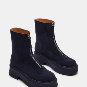 Experience style and comfort with the JONES ankle boot. The sleek design and front zipper detail add a touch of modernity to any outfit. Made with durable suede, these ankle booties are perfect for everyday wear.