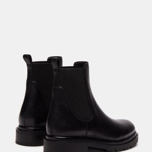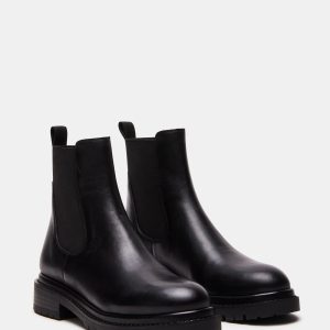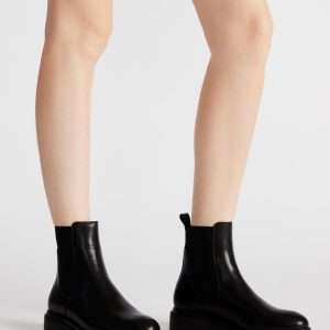 bootie is an ankle-height Chelsea design with a treaded front platform and a low block heel. The side stretch gores extend to the back, adding extra movement to this comfortable slip-on style.