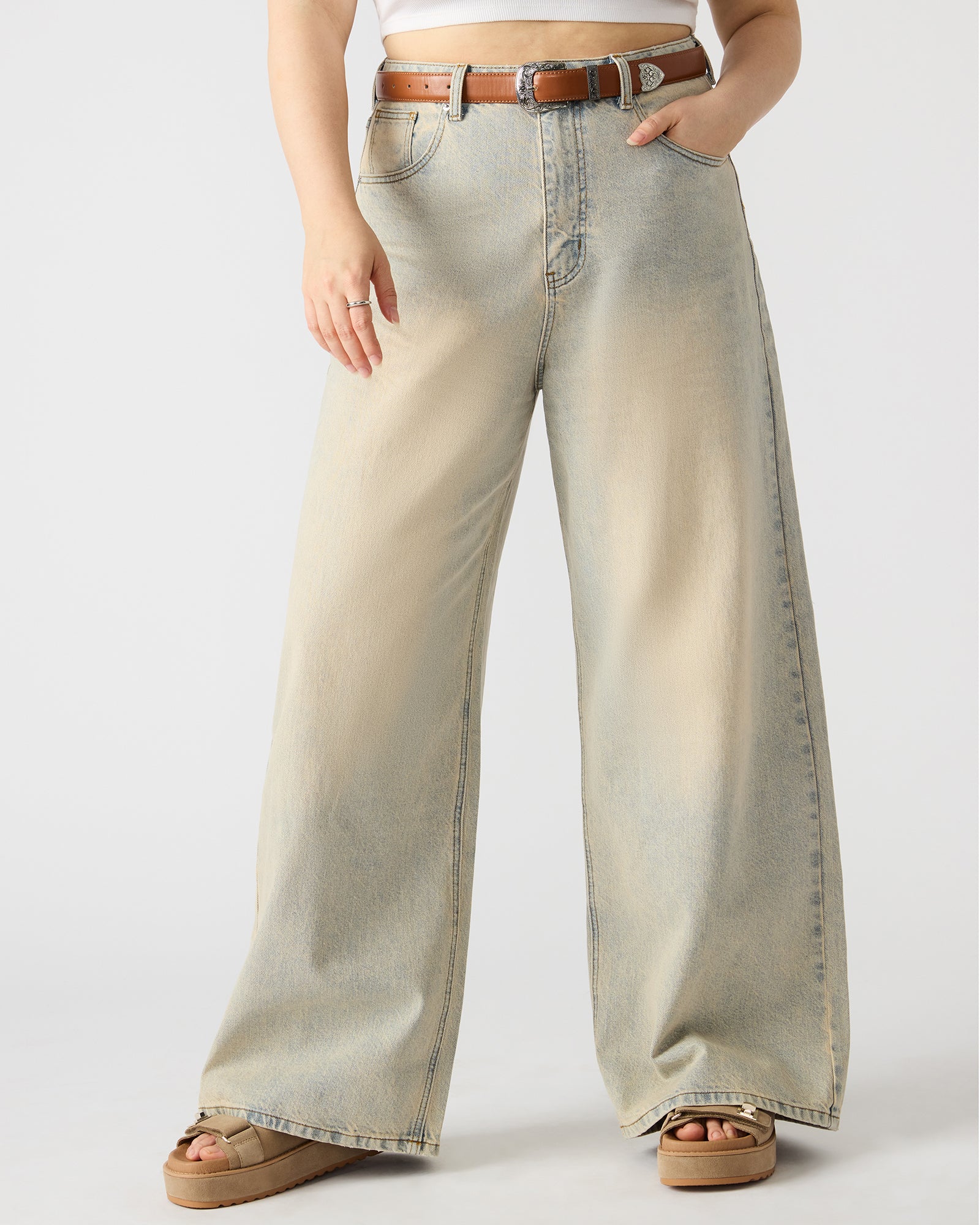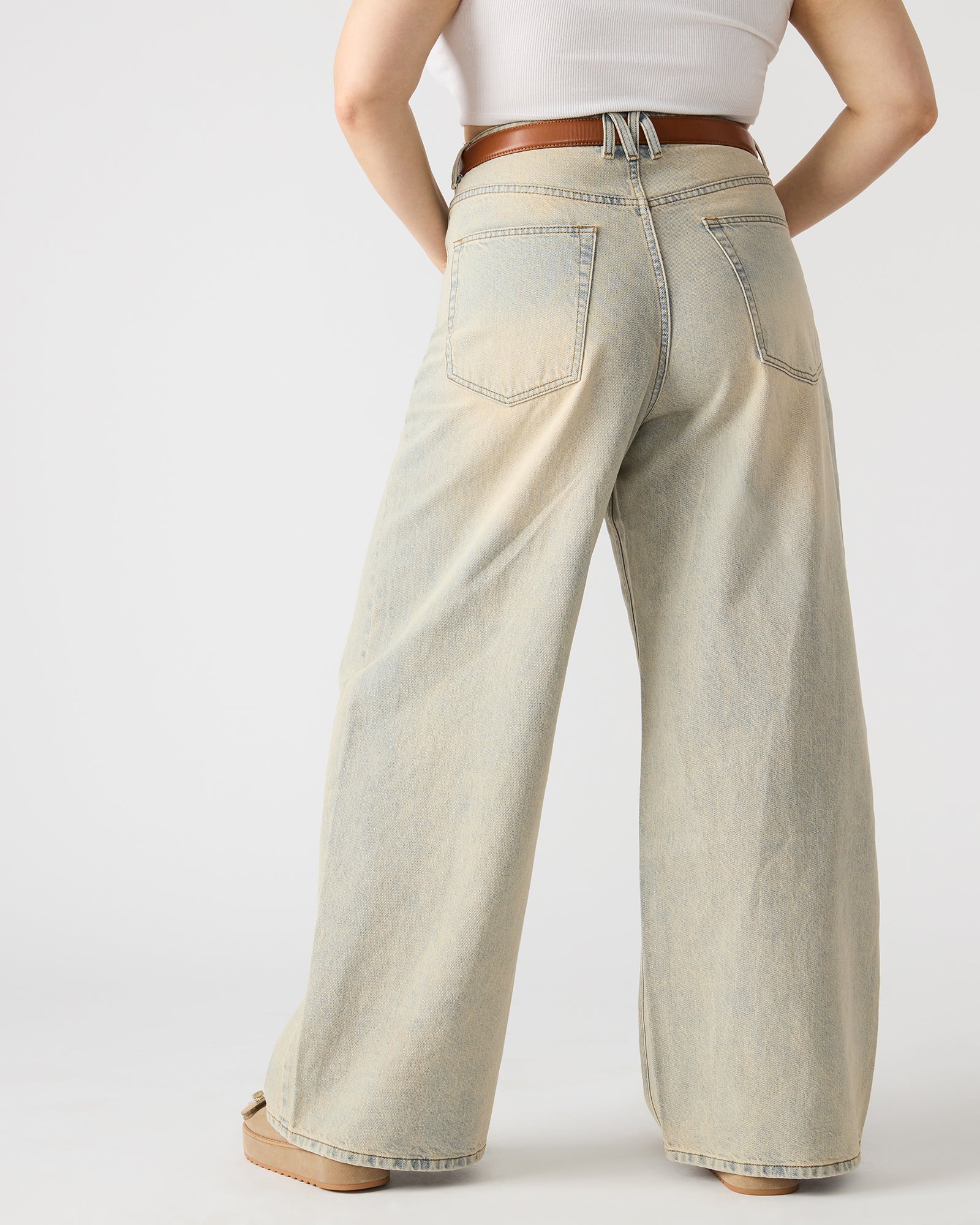 Introducing the MAGNUS jean– the perfect blend of style and functionality. These wide-leg jeans feature functional front pockets for easy access and a zipper and shank button for a secure fit. The washed denim look adds a touch of sophistication to any outfit. Upgrade your wardrobe with these must-have jeans.