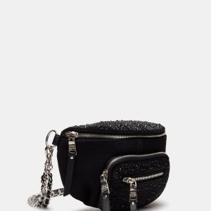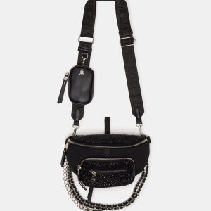 Enhance any outfit instantly with the MAXIMA BAG BLACK, a rhinestone belt bag designed for stylish functionality on the go.