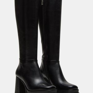 Crafted for ultimate sophistication, these knee-high boots boast a sleek square toe and sturdy block heel for effortless style. Elevate your wardrobe with the MYSTERY platform boot.