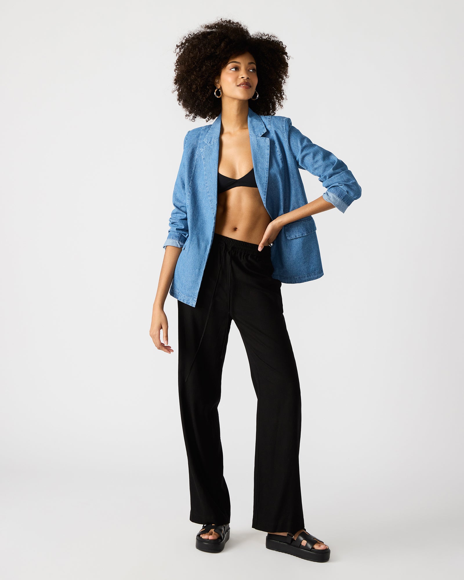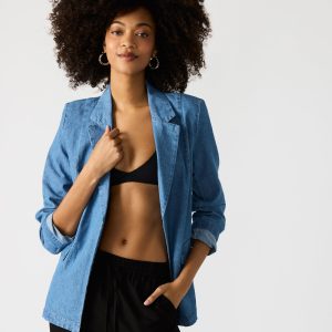 blazer over your OOTD for a touch of tailored style. The no-button cuffs and open front give this jacket clean, unbroken lines.