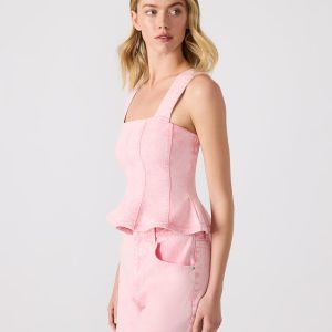 Upgrade your wardrobe with our PENELOPI denim tank top. Made with high-quality denim, this tank top features a solid color pink design, adding a touch of sophistication to your outfit. Complete your look with the matching set for a stylish and coordinated ensemble. Elevate your fashion game with this must-have piece.