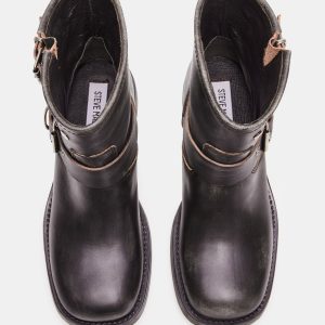 Elevate your style with the RAMPANT moto boot. Constructed with an ankle bootie design and sturdy lug sole, these boots are perfect for making a statement. The sleek leather adds a touch of sophistication to any outfit.