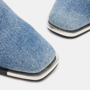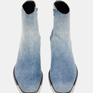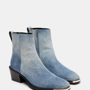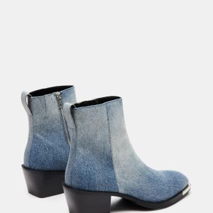 The RICHIE boot pairs an angled block heel with an ankle-height upper for an updated washed denim western-inspired look.