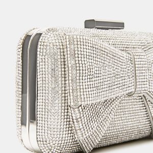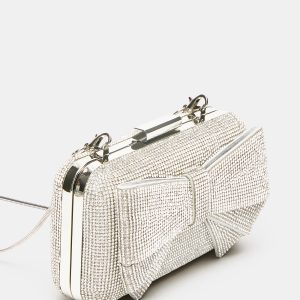This THAIS bag is a sparkling and stylish addition to any outfit. Featuring a magnetic clutch closure, a chain crossbody strap, and a cute bow detail, it offers both functionality and fashion. Adorned in sparkly rhinestones, it adds a touch of glam to your look. Perfect for any occasion.