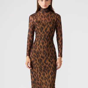 - Long sleeve mock neck midi dress